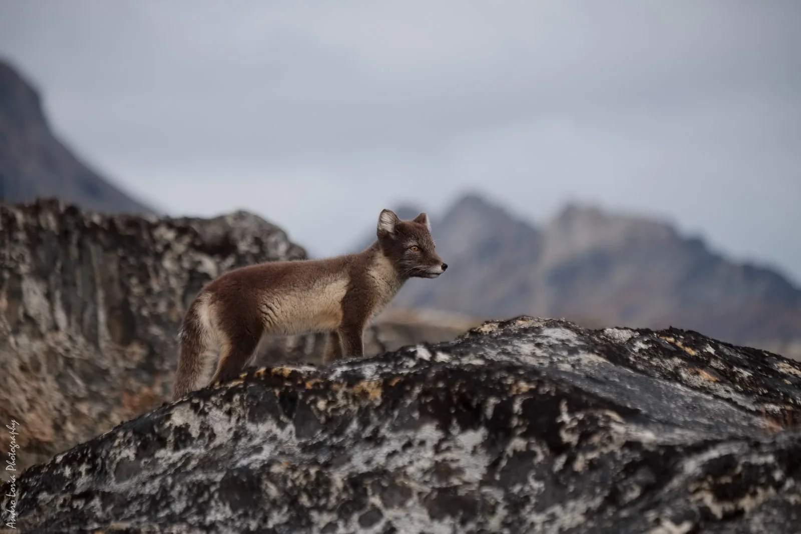 fjord patrol, arctic fox in summer coat, Karale fjord area, East Greenland