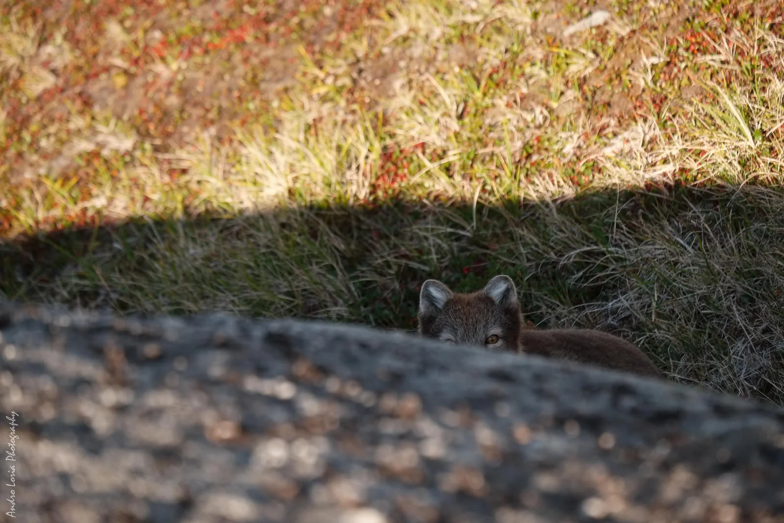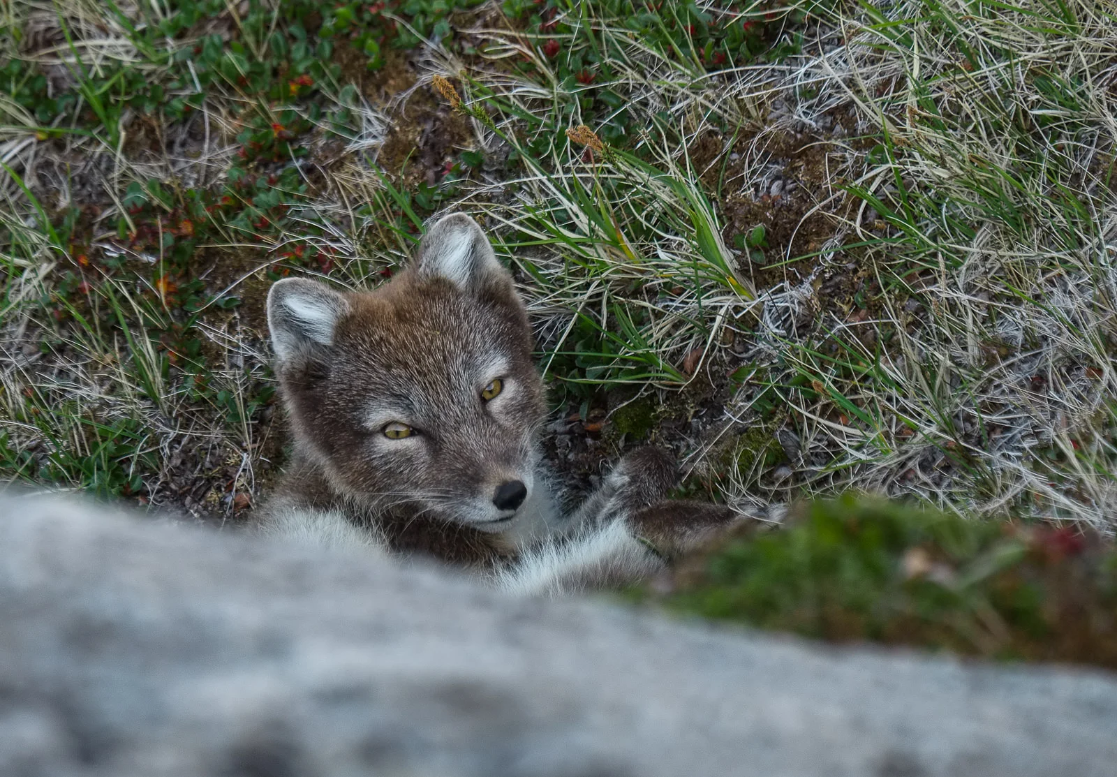I see you - arctic fox was resting in the shadow of a boulder when I found her/him