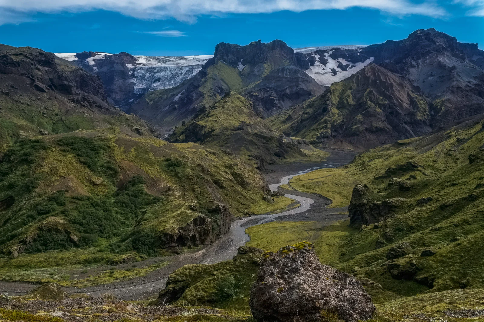 Our first camp was at Þórsmörk, south of Iceland between the glaciers Tindfjallajökull and Eyjafjallajökull, the latter home for the famost trouble maker Eyjafjallajökull vulcano. Þórsmörk is a beautiful mountain ridge that was named after the Norse god Thor with breathtaking views.