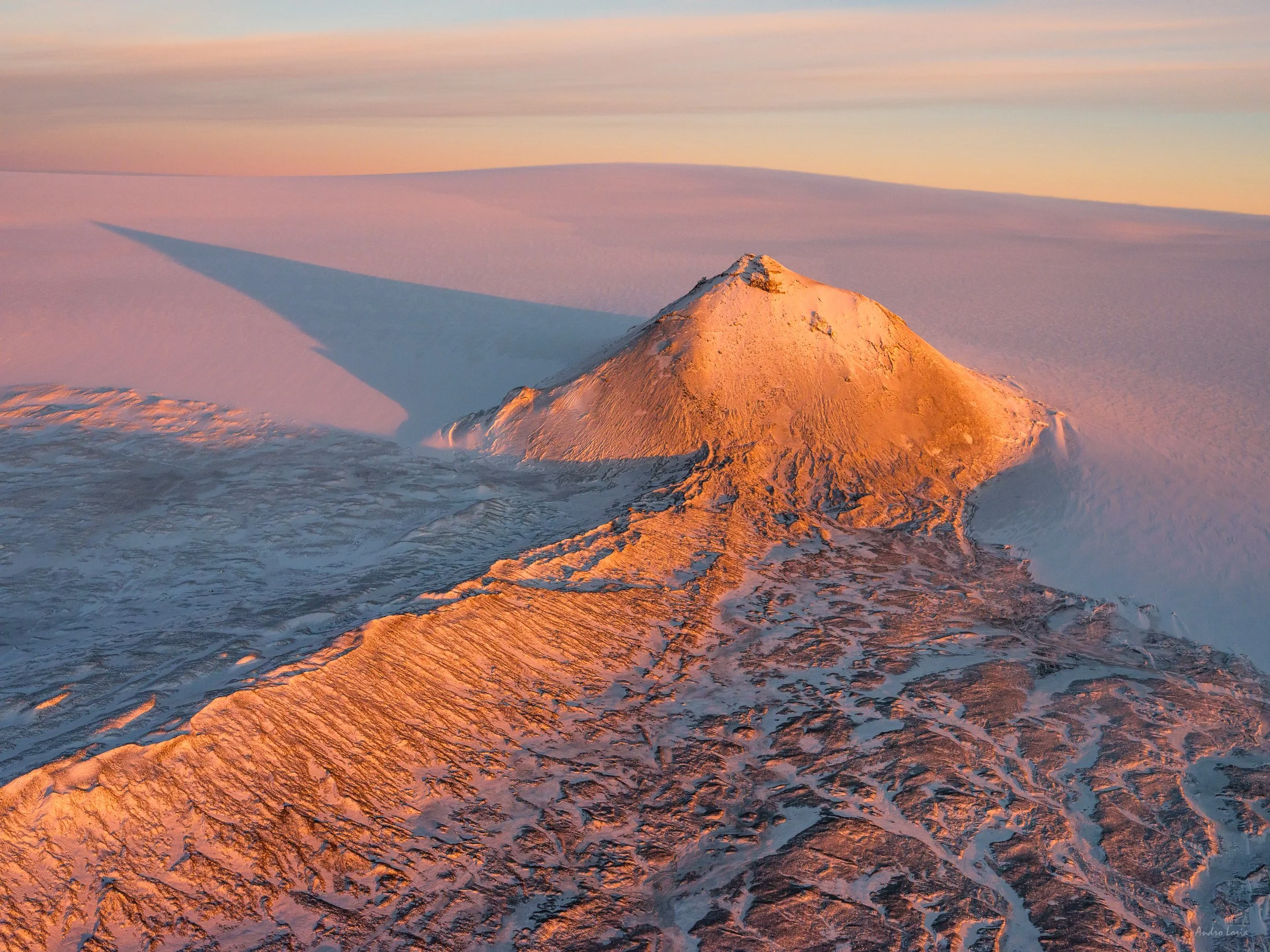 In December 2018 we flew over Langjökull glacier at sunrise and the scenery over the ice cap of the glacier was otherworldly. It was like flying over a giant magic painting. The shades of pink and scarlet and gold were all around us.