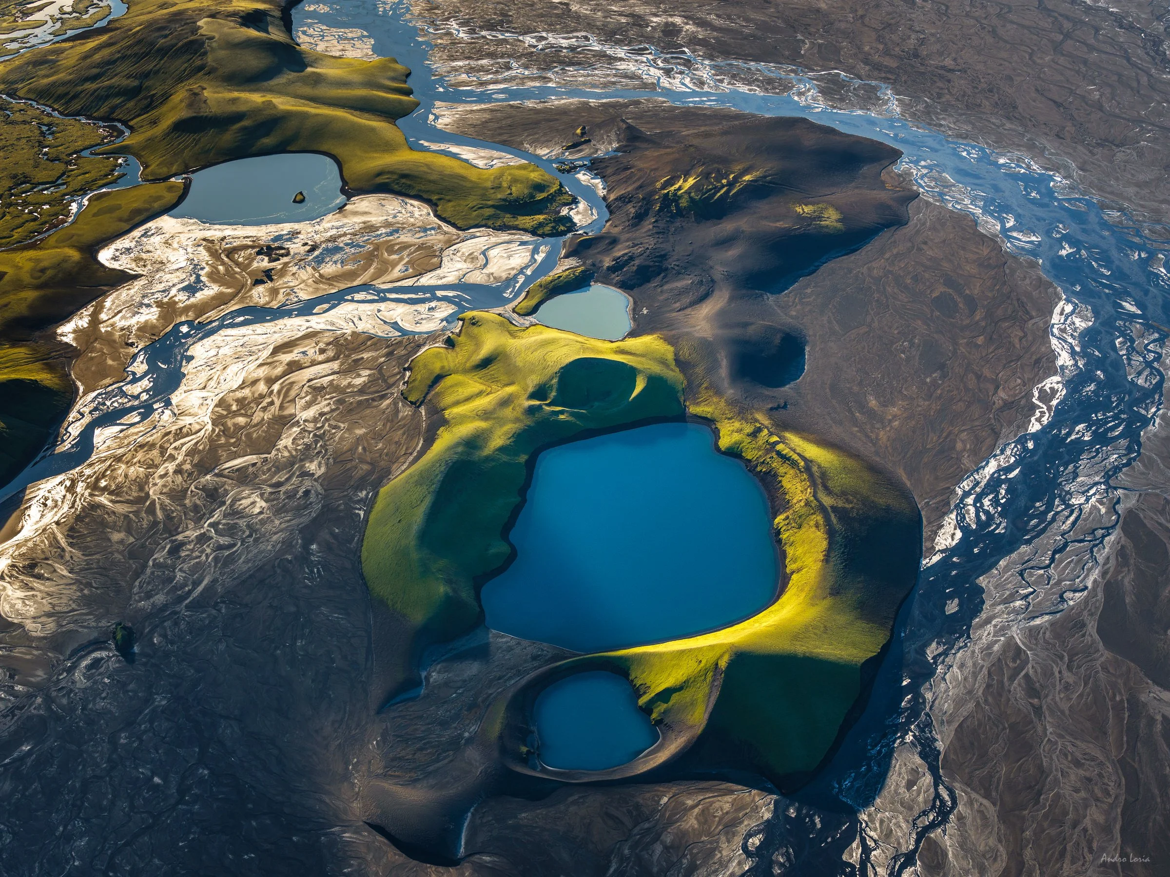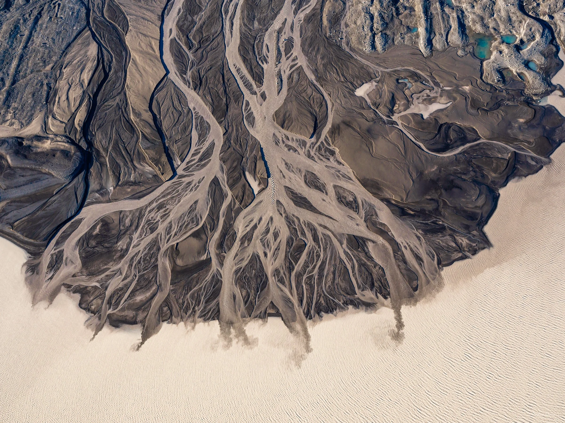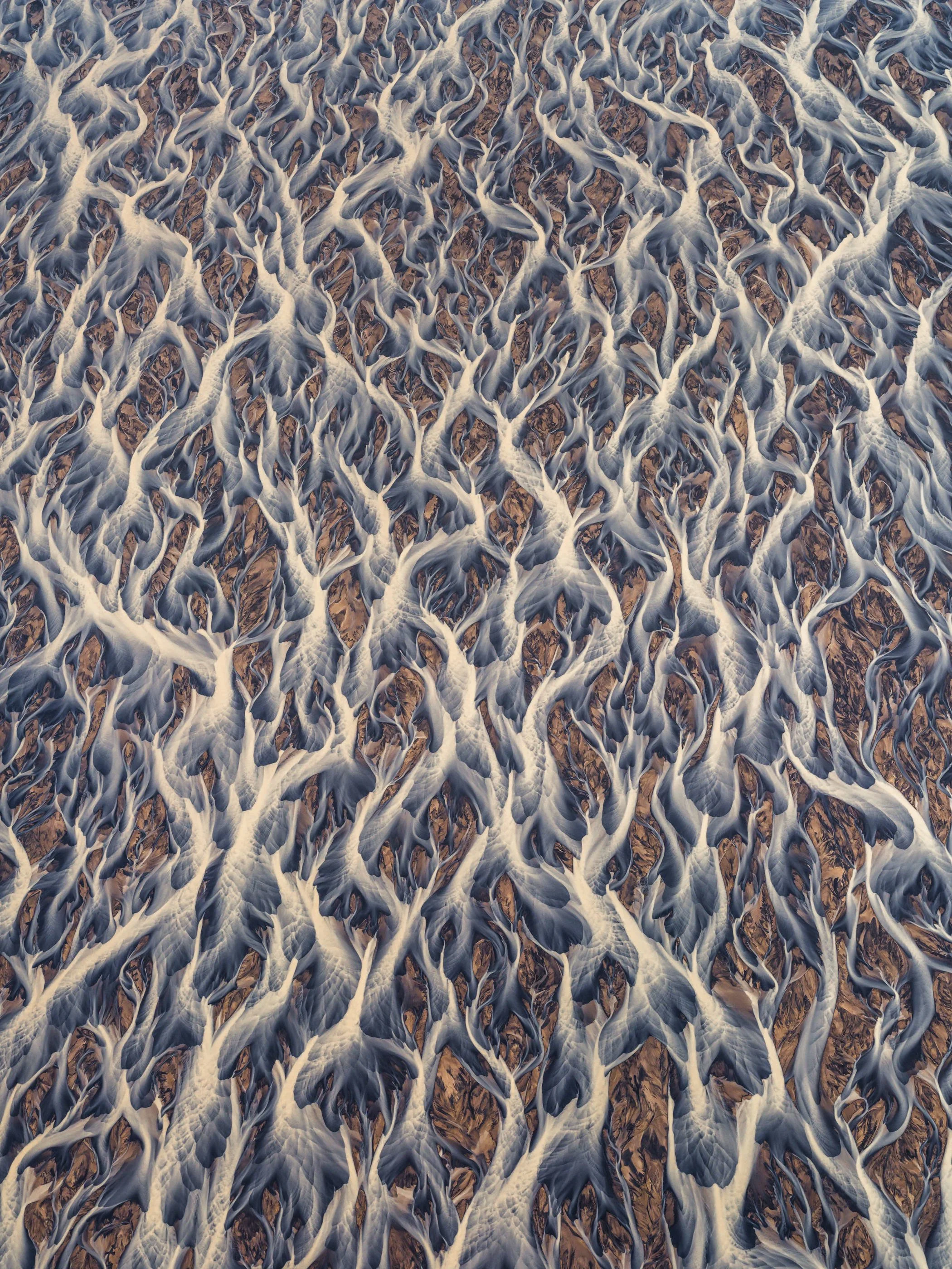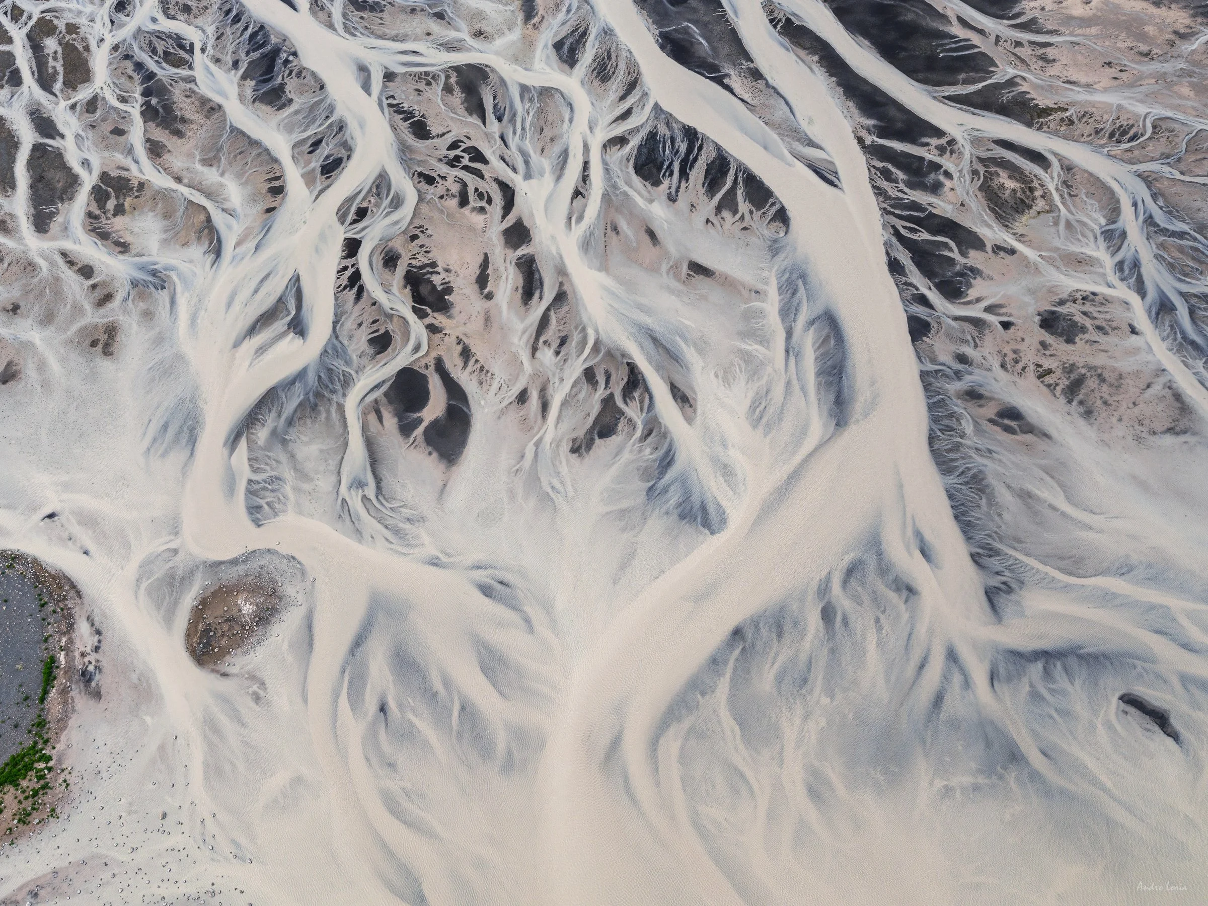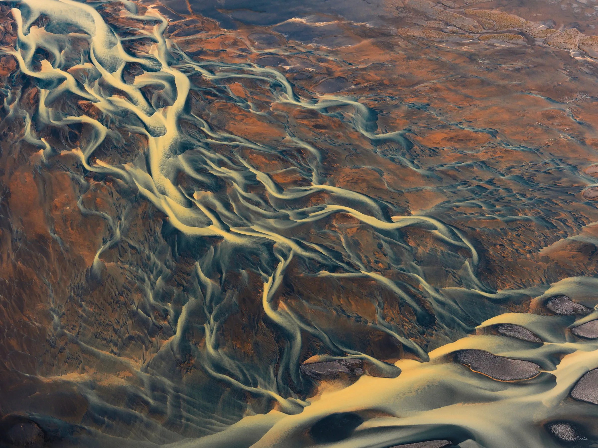 The uniqueness of the views, the ever-changing patterns of landscape and light and fast changing scenery all make aerial photography very challenging, but also very rewarding. The views from above in Iceland are like views from a different planet and often have an other-worldly feel about them. Sometimes they look like a vascular system, nature repeats its patterns, and sometimes like a giant neuronal network laid out on the ground. Seeing and photographing from the air is both a challenge and an immense pleasure and privilege.